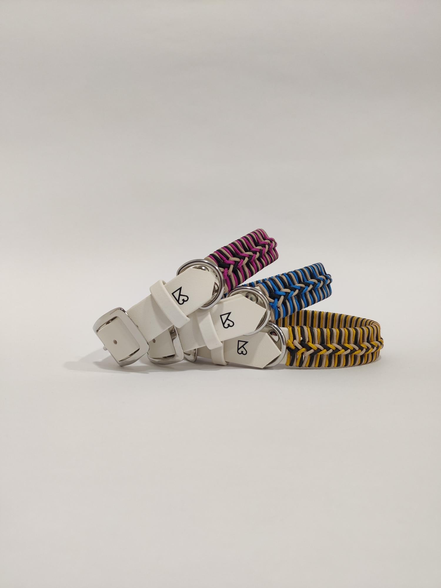 Durable Biothane collars paired with hand-woven paracord details. Designed for everyday wear, combining strength, comfort, and a distinctive look.